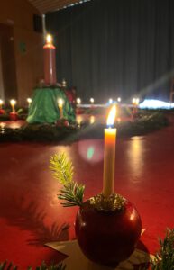In ruhiger, besinnlicher Atmosphäre war der Raum von Kerzenlicht und leiser Musik erfüllt. Eine Spirale aus Tannenzweigen lud die Kinder dazu ein, einzeln die Spirale entlangzugehen, eine Kerze am inneren Licht zu entzünden und diese auf dem Weg nach außen in die Spirale zu stellen. So wuchs nach und nach ein leuchtender Weg aus vielen kleinen Lichtern. Dieser besondere Moment schenkte den Kindern Zeit für Konzentration, Mut und innere Ruhe.