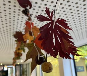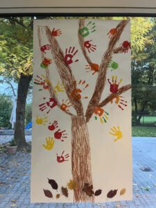 Auch die Kreativität kam nicht zu kurz: Gemeinsam wurden herbstliche Girlanden gefädelt und mit bunten Handabdrücken Blätter an Bäume gedruckt. Diese Kunstwerke schmücken jetzt den Eingangsbereich.