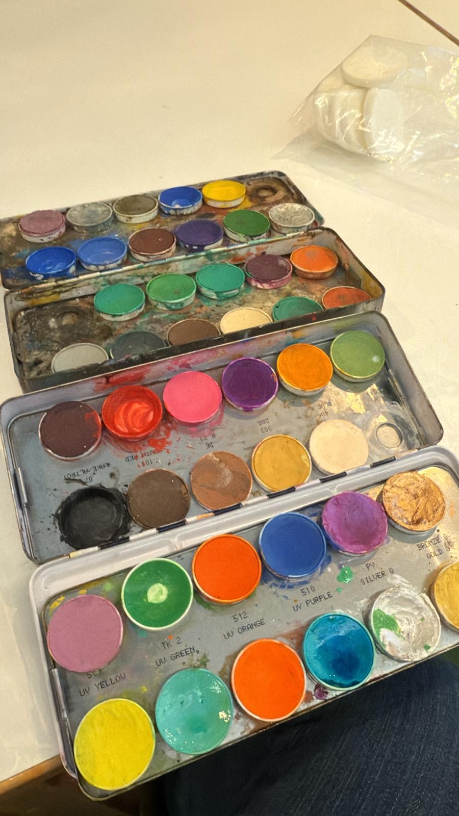 Dank der lieben Unterstützung einiger Mamis war es auch dieses Jahr möglich, das Kinderschminken in allen drei Gruppen wieder anzubieten – zur großen Freude der Kinder. Mit leuchtenden Farben, viel Glitzer und funkelnden Strasssteinen entstanden wieder richtig kleine Kunstwerke: Einhörner, Schmetterlinge, Dinosaurier und Tiger waren dieses Jahr besonders hoch im Kurs. Und obwohl es gar nicht so leicht ist, dafür eine Weile ganz ruhig sitzen zu bleiben, haben die Kinder wieder so toll mitgemacht – geduldig, neugierig und voller Vorfreude auf das Ergebnis. Am Ende kam wie immer der schönste Moment: erst der erwartungsvolle Blick in den Spiegel – und dann das glückliche Strahlen, wenn das fertig geschminkte Gesicht zum Vorschein kam. Zum Abschluss durfte natürlich ein gemeinsames Gruppenfoto nicht fehlen. Es hat allen wieder großen Spaß gemacht! 🙂