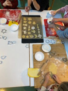 In der vergangenen Woche duftete unser Kindergarten besonders festlich: Gemeinsam mit den Kindern haben einige Mamas und Omas köstliche Plätzchen gebacken. Mit viel Freude wurde Teig geknetet, ausgerollt und in Sterne, Herzen und Tannenbäume ausgestochen.
