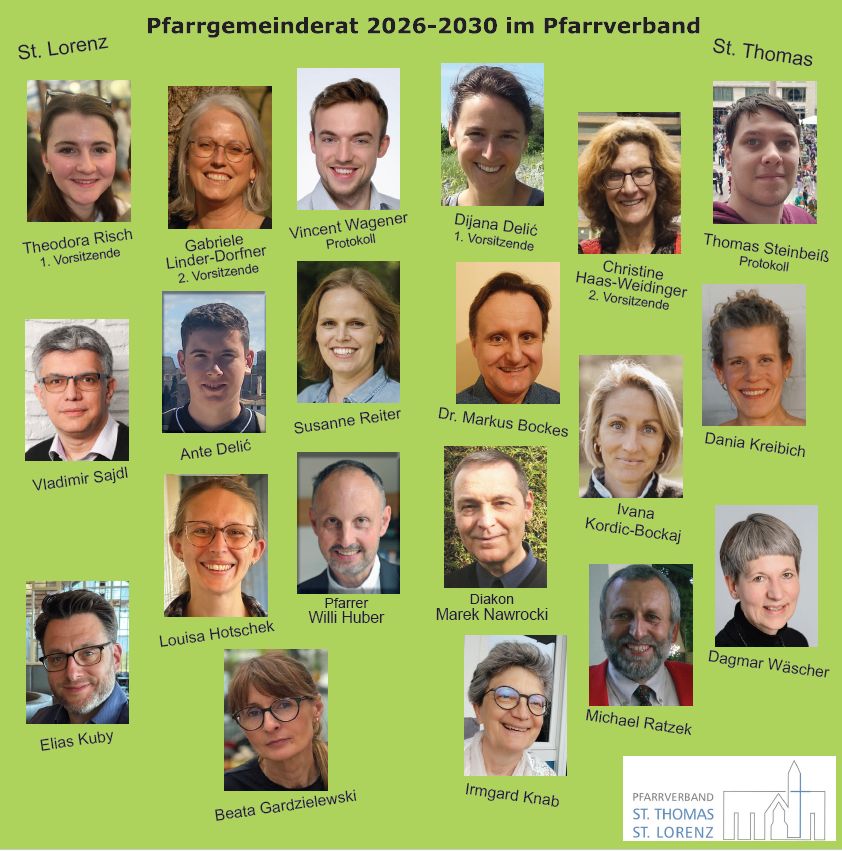 Die Aufgaben in den Vorständen (Vorsitzende, Stellvertreterin und Schriftführer) übernehmen Dijana Delić, Christine Haas-Weidinger und Thomas Steinbeiß für St. Thomas sowie Theodora Risch, Gabriele Linder-Dorfner und Vincent Wagener für St. Lorenz. Herzlichen Dank!